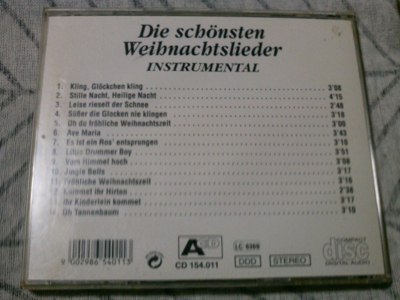 Diese CD umfasst eine wunderschöne Auswahl der klassischen Weihnachtslieder, die instrumental dargeboten werden. Genießen Sie die zauberhaften Klänge von "Kling Glöckchen kling", "Leise rieselt der Schnee", "Jingle Bells" und vielen weiteren beliebten Weihnachtsliedern. Die harmonischen Instrumentalversionen dieser bekannten Lieder schaffen eine beruhigende und festliche Atmosphäre in Ihrem Zuhause.