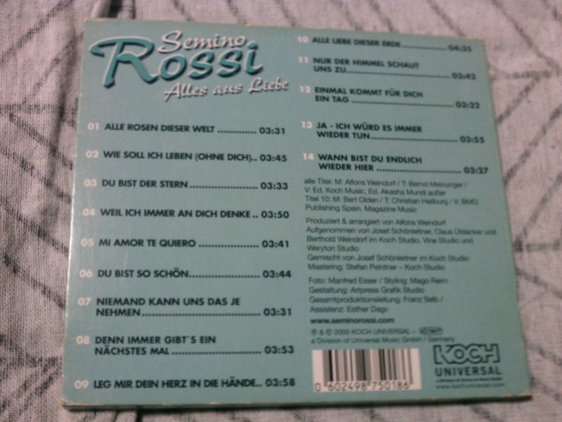 "Alles aus Liebe" von Semino Rossi ist weit mehr als nur eine CD – es ist eine Gefühlsreise, die sich jeder Musikbegeisterte gönnen sollte. Mit seiner einzigartigen Stimme und seinen gefühlvollen Interpretationen berührt Semino Rossi die Herzen seiner Hörer und lässt sie in eine Welt voller Emotionen und Leidenschaft eintauchen.