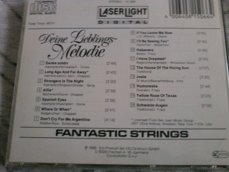 Mit "The House of the Rising Sun" und "Dark Eyes" bringt dieses Album das beste aus den Welthits und kombiniert es mit deutscher Interpretationskunst. Dieses Werk ist nicht nur eine Sammlung von Melodien, sondern ein emotionales Erlebnis, das in keiner Musiksammlung fehlen darf. Lassen Sie sich von den fantastischen Klängen der Fantastic Strings verzaubern und genießen Sie eine Musikreise, die lange in Erinnerung bleibt.