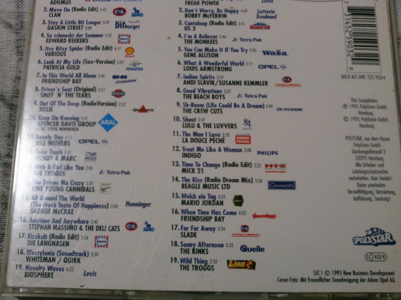 Ob Sie ein Sammler von Tonträgern aus dieser Zeit sind oder einfach die Musik der 90er Jahre lieben, diese CD wird ein unverzichtbarer Bestandteil Ihrer Sammlung sein. Die Kombination aus bekannten Werbejingles und kultigen Hits macht sie zu einem wertvollen Exemplar für jeden Musikliebhaber.
