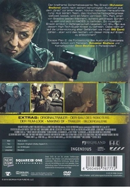 In "Escape Plan 2: Hades" folgt der Plot Ray Breslin (gespielt von Sylvester Stallone), der einen Elite-Crew trainiert, die sich auf das Extrahieren von entführten Geiseln aus den am besten gesicherten Gefängnissen der Welt spezialisiert hat. Die Story nimmt eine aufregende Wendung, als ein Mitglied seines Teams, Shu Ren, in das weltweit am besten gesicherte Gefängnis "Hades" verschleppt wird und Ray einen ausgeklügelten Plan entwickelt, um ihn zu befreien. Mit hochkarätigen Schauspielern und einem spannungsgeladenen Plot ist diese DVD ein Muss für alle Action-Fans.