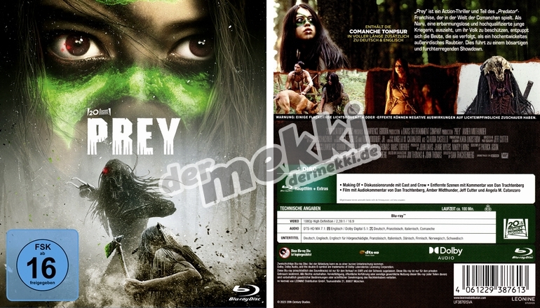 Extras: Making Of / Diskussionsrunde mit Cast und Crew / Entfernte Szenen mit Kommentar von Dan Trachtenberg / Film mit Audiokommentar von Dan Trachtenberg, Amber Midthunder, Jeff Cutter und Angela M. Catanzaro