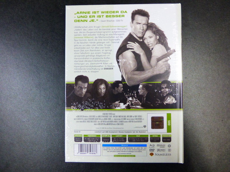 Tauchen Sie ein in die atemberaubende Welt des explosiven Actionfilms „Eraser“ mit Arnold Schwarzenegger in der Hauptrolle, die durch das Limited Mediabook zu einem besonderen Sammlerobjekt wird.