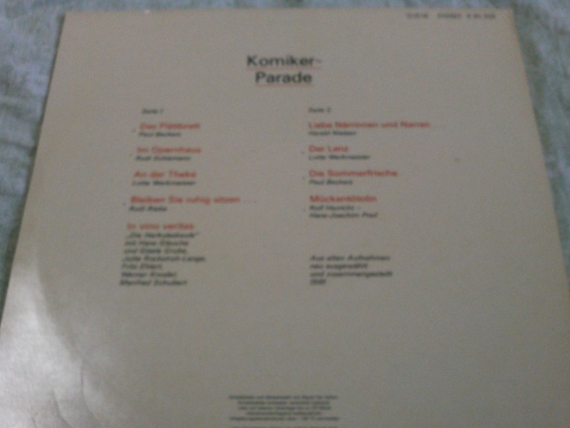 Die "Komiker Parade" ist mehr als nur ein Tonträger – sie ist ein nostalgisches Erlebnis, das Sie und Ihre Gäste zum Lachen bringen wird. Die faszinierende Mischung aus klassischen und einzigartigen Darbietungen sorgt dafür, dass Sie Stunden über Stunden bestens unterhalten werden. Die Herstellung dieser Vinyl-Platte wurde mit höchster Sorgfalt vorgenommen, um eine beeindruckende Klangtiefe und Klangtreue zu gewährleisten.