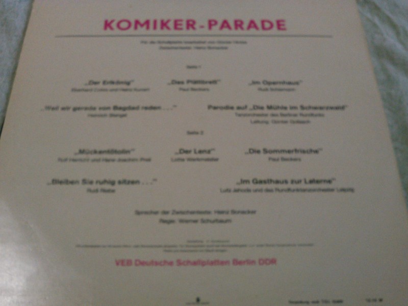 Entdecken Sie die "Komiker-Parade", ein einzigartiges Vinyl-Album, das die Essenz der deutschen Comedy in einem großartigen Tonträger festhält. Auf dieser außergewöhnlichen Schallplatte finden sich einige der bekanntesten deutschen Komiker, deren Darbietungen über Generationen hinweg für Lachen und Freude gesorgt haben. Die sorgfältig zusammengestellte Kollektion umfasst humorvolle Szenen und Anekdoten, die zeitlos sind und auch heute noch für grandiose Unterhaltung sorgen.