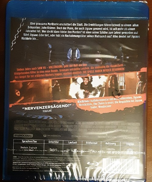 Durch die intensive Nutzung von Licht- und Schatteneffekten und die beeindruckende filmtechnische Umsetzung wird Jigsaw auf Blu-ray zu einem unvergesslichen Erlebnis, das lange im Gedächtnis bleibt. Sichere dir diese Blu-ray und erlebe den ultimativen Horror zuhause!