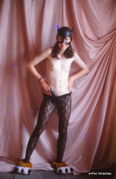 Fesselnde Aufnahmen: Die Darstellung zeigt eine Person in einer verführerischen und zugleich geheimnisvollen Verkleidung, die durch kreative Aspekte wie eine schwarze Maske mit Katzenohren und Netzstrumpfhosen betont wird. Dies verleiht den Bildern eine intensive, fantasievolle Atmosphäre, die den Betrachter in ihren Bann zieht.