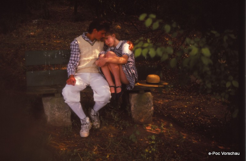Dieses besondere Dia zeigt ein intimes Momentaufnahme eines Paares in einer natürlichen und entspannten Umgebung. Die warmen Farbtöne und das sanfte Lichtspiel in der Aufnahme verstärken die sinnliche Atmosphäre des Bildes und laden den Betrachter ein, sich in der Szenerie zu verlieren. Dieses Kunstwerk transportiert Emotion und Leidenschaft, wobei die Authentizität und Zärtlichkeit zwischen den dargestellten Personen fühlbar wird.