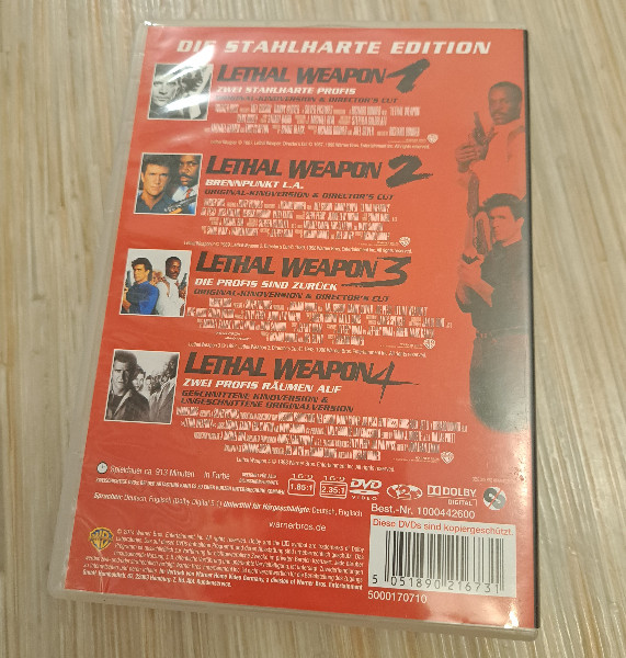 Mit der Lethal Weapon Complete Edition 1-4 holen Sie sich ein Stück Filmgeschichte ins eigene Heim! Bestellen Sie noch heute und tauchen Sie ein in die Welt von Riggs und Murtaugh – Spannung und Action garantiert!