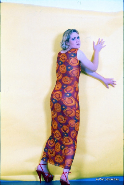 Tauchen Sie ein in die faszinierende Welt der Retro-Erotik mit diesem exquisiten, ungerahmten Erotikdia. Das Bild zeigt eine stilvolle Dame in einem langen, gemusterten Kleid mit lebhaftem Orange und Rot, das an die kühne Ästhetik der späten 60er und frühen 70er Jahre erinnert. Ihr expressiver Pose und lebendiger Blick fangen die freie und experimentelle Atmosphäre der Epoche ein und machen dieses Dia zu einem außergewöhnlichen Stück für Sammler und Liebhaber von Vintage-Erotik. Perfekt geeignet zur Dekoration Ihres Privatzimmers oder als einzigartiges Geschenk für jemanden, der besondere künstlerische Ausdrücke schätzt.
