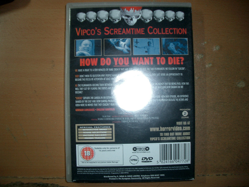 Entdecken Sie das verstörende und faszinierende Drama "Suicide - How do you want to Die?" aus der berüchtigten Vipco's Screentime Collection. Dieses filmische Meisterwerk, präsentiert von Raoul Heimrich, hat Zuschauer auf der ganzen Welt in Angst und Schrecken versetzt!