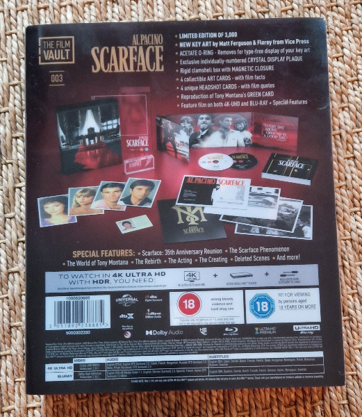 Scarface is being sold in the limited "Film Vault Edition". Sold as shown in the photos.
