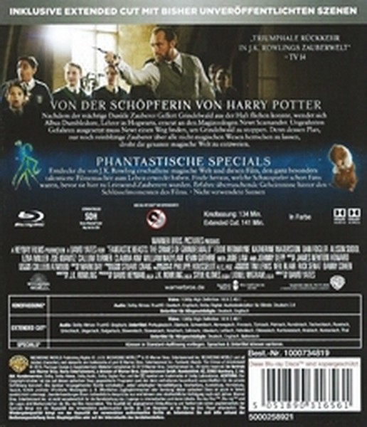 „Phantastische Tierwesen: Grindelwalds Verbrechen“ ist ein fesselndes Abenteuer, das Sie in die magische Welt von J.K. Rowling entführt. Ob als Geschenk oder für das eigene Heimkino – diese Blu-ray-Edition wird Sie begeistern und für viele zauberhafte Stunden sorgen.
