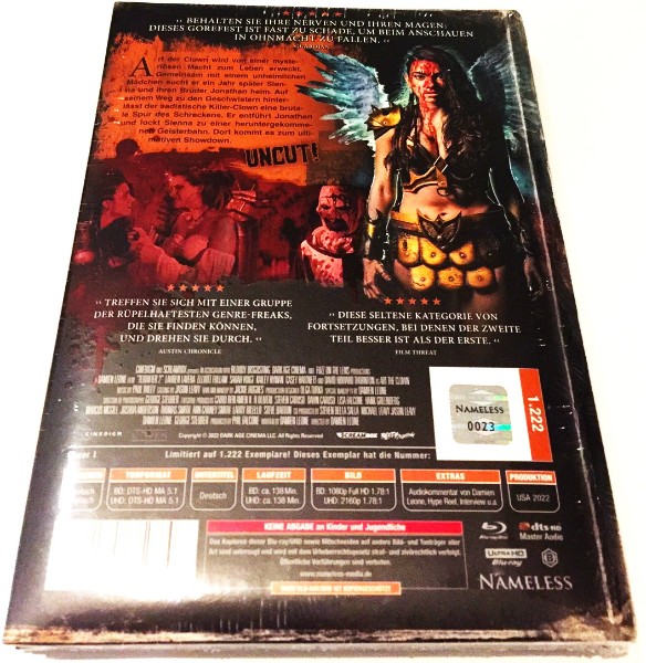 Der packende Nervenkitzel von "TERRIFIER 2" ist nicht nur ein Erlebnis, sondern ein echter Kultfilm geworden, der in keiner Sammlung fehlen darf. Sichern Sie sich jetzt diese limitierte Edition und lassen Sie sich von der düsteren Welt des Horrors verzaubern!