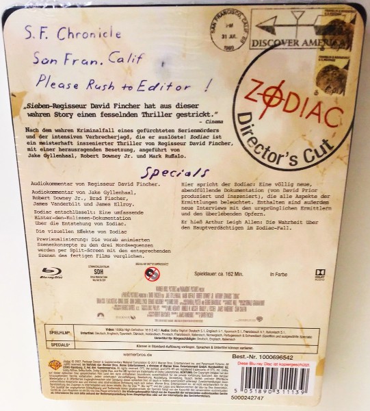 Tauchen Sie in das fesselnde Meisterwerk "Zodiac - Die Spur des Killers" ein, ein Film, der durch seine packende Handlung und herausragende schauspielerische Leistungen von Mark Ruffalo, Jake Gyllenhaal und Robert Downey Jr. besticht. Die limitierte Steelbook-Edition überzeugt nicht nur durch ihre einzigartige Optik, sondern bietet auch den exklusiven Director''s Cut. Erleben Sie die Spannung und das Geheimnis des berüchtigten Zodiac-Killers aus der Feder des weltweit gefeierten Regisseurs von "Se7en" und "Fight Club".