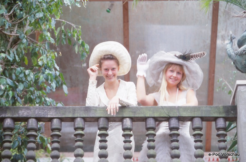 Die abgebildeten Damen in historischen Kostümen verkörpern eine zeitlose Anmut und Eleganz. Mit aufwendig verzierten Hüten und stilvoller Kleidung, untermalt von einem charmant natürlichen Lächeln, fangen diese Dias nicht nur die Schönheit der Modelle, sondern auch die Raffinesse und das Stilbewusstsein einer vergangenen Epoche ein.