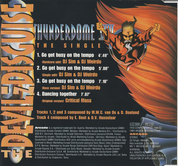 Zum Verkauf steht die Maxi-CD "Thunderdome VIII - The Single - The Devil In Disguise" (ID&T / Arcade, 1995) von DJ Sim & DJ Weirdo / Critical Mass.