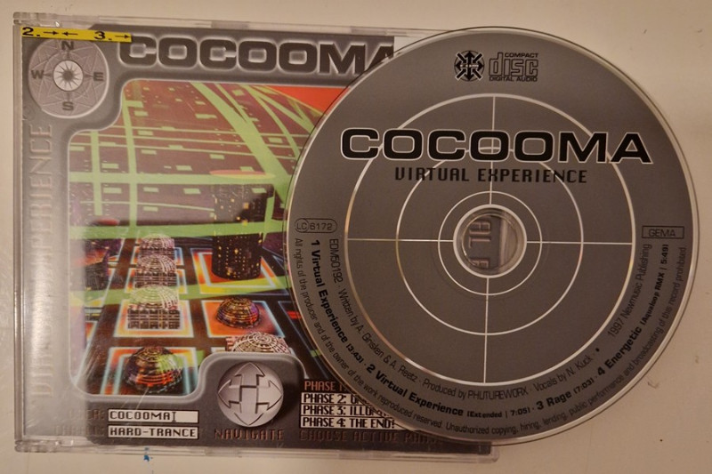 Zum Verkauf steht die Maxi-CD "Virtual Experience" (EDM, 1997) des Hard Trance-Duos Cocooma.