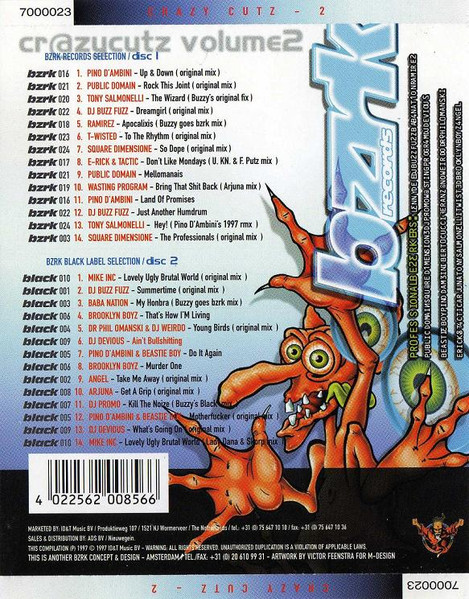 Zum Verkauf steht die vom niederländischen Hardcore Techno-Produzenten (DJ) Buzz Fuzz (alias Tony Salmonelli, Bertocucci Feranzano etc.) zusammengestellte (nicht gemixte) 2CD-Compilation "BZRK Records - Cr@zy Cutz 2" (ID&T / BZRK Records, 1998) diverser Interpreten; u.a. Pino D''''''''''''''''''''''''''''''''''''''''''''''''''''''''''''''''''''''''''''''''''''''''''''''''''''''''''''''''''''''''''''''''ambini ((DJ) Buzz Fuzz), Ramirez, Public Domain, Mike Ink.