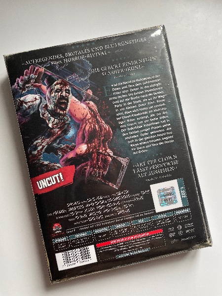 Das Mediabook "Terrifier 1" zeichnet sich durch sein einzigartiges und auffälliges Cover-Design aus, das perfekt die düstere und schaurige Atmosphäre des Films einfängt. Das Cover zeigt eindrucksvolle Bilder von den Hauptcharakteren und symbolträchtigen Szenen, die das Herz eines jeden Horrorfans höher schlagen lassen. Die lebendigen Farben und das detailreiche Design machen dieses Mediabook zu einem echten Hingucker in Ihrer Sammlung.