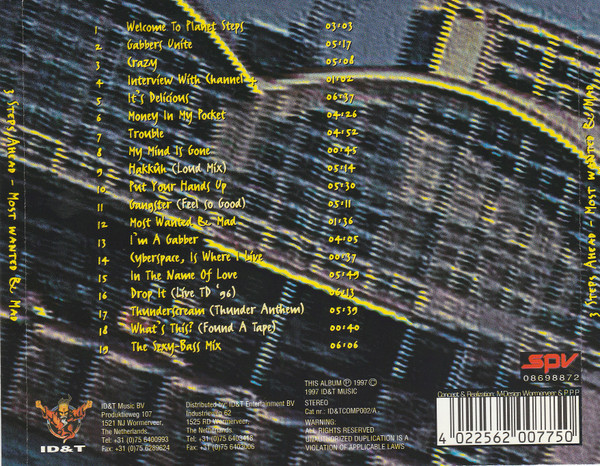 Zum Verkauf steht die 1CD-Veröffentlichung "Most Wanted & Mad" (ID&T, 1997) des niederländischen Hardcore Techno-Produzenten 3 Steps Ahead (alias The Ender, The Illegal Alien, Silverbells etc.)