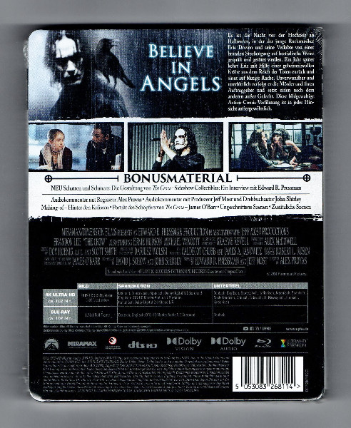 Bonusmaterial: Schatten und Schmerz: Die Gestaltung von The Crow - Sideshow Colletibles - Making Of-Hinter den Kulissen - Audio Kommentar von Produzent Jeff Most und Drehbuchautor John Shirley - Portrait des Schöpfers von THE CROW James O''''''''''''''''''''''''''''''''Barr - Storyboards - Entwürfe des Filmsets - Erweiterte Szenen - Montage geschnittener Szenen
