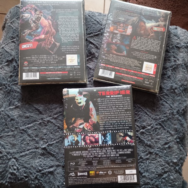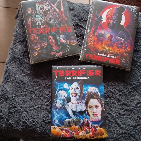 Terrifier, Terrifier 2 und Terrifier The Beginning jeweils im wattierten Mediabook.