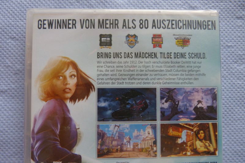 Das Spiel ist im Jahr 1912 angesiedelt und der Spieler schlüpft in die Rolle des Ex-Pinkerton- Agenten Booker DeWitt, der auf eine Rettungsmission in die fl iegende Stadt Columbia geschickt wird. Seine Aufgabe? Die seit ihrer Kindheit gefangen gehaltene Elizabeth zu befreien. Auf ihrer waghalsigen Flucht entwickeln Booker und Elizabeth eine starke Beziehung - eine, die es Booker ermöglicht, seine eigenen Fähigkeiten mit Elizabeths weltverändernder Kontrolle über ihre Umgebung zu vereinen. Zusammen bestreiten sie rasante Gefechte in den Skylines, in den Straßen und Häusern von Columbia und auf riesigen Zeppelinen in den Wolken, wobei sie lernen, ein stets wachsendes Arsenal von Waffen und Fähigkeiten zu beherrschen.