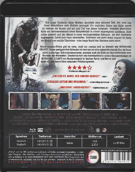 Mit einem FSK 18 Siegel ist "Berkshire County" ein Muss für alle Horrorfans, die sich nicht davor scheuen, bis an ihre Grenzen zu gehen. Der Film verspricht Ihnen ein Abenteuer voller Schrecken, das Sie nicht so schnell vergessen werden.