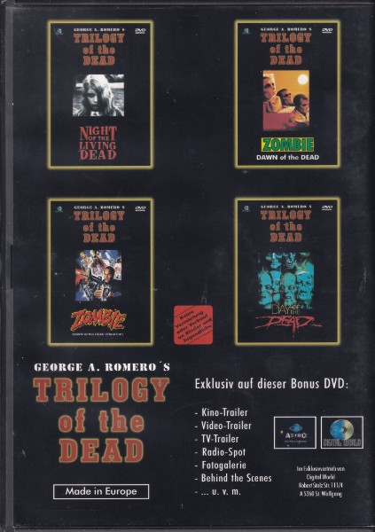 Tauchen Sie ein in die faszinierende Welt des Horrorfilms mit dieser exklusiven DVD-Dokumentation "Making of Trilogy of the Dead". Begleiten Sie George A. Romero, den "Godfather of Zombies", und erfahren Sie die spannenden Geschichten und Geheimnisse hinter der Entstehung seiner legendären Filmreihe. Von den ersten Dreharbeiten von "Night of the Living Dead" über die fein inszenierten Szenen von "Dawn of the Dead" bis hin zu den packenden Momenten von "Day of the Dead" - diese Dokumentation bietet Ihnen einen tiefen Einblick in die Filmproduktion, die kreative Vision und die unerwarteten Herausforderungen, denen das Filmteam begegnet ist.