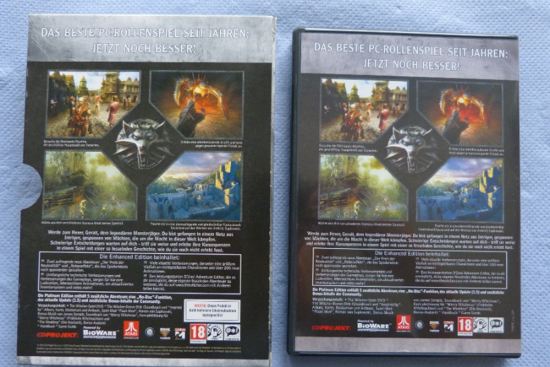 - Das Spiel The Witcher, Bonus-DVD - Hinter den Kulissen, Soundtrack CD, Handbuch, Spielführer, "Der Hexer" - Eine Geschichte von Andrzej Sapowski und eine Karte der Spielwelt.