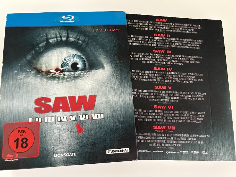 Die „SAW Blu-ray Box 1-7“ bietet Horror-Liebhabern ein ultimatives Filmerlebnis, das jeden Spannungsjunkie in seinen Bann zieht. Diese sorgfältig zusammengestellte Box enthält alle sieben Filme der weltweit berüchtigten SAW-Reihe. Jeder Film zeigt die grausame und intensive Geschichte, die Jigsaws tödliche Spiele zu einem Kultphänomen gemacht hat. Mit gestochen scharfer Blu-ray-Qualität genießen Sie jede Szene in lebendigen Farben und kristallklarer Auflösung. Diese Box ist ein Muss für jeden, der auf der Suche nach dem ultimativen Horror-Marathon ist. Machen Sie jede Filmnacht zu einem unvergesslichen Erlebnis und erleben Sie den puren Nervenkitzel, den nur die SAW-Filme bieten können.