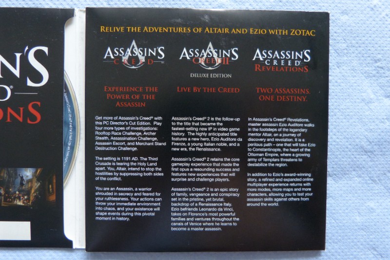 Verpasse nicht die Gelegenheit, diese meisterhaft gestaltete und hochgelobte Spielesammlung in dein Repertoire aufzunehmen. Hol dir noch heute das ZOTAC Assassin''''''''s Creed 3-Game Pack und erlebe spannende Abenteuer und historische Mysterien auf deinem PC.