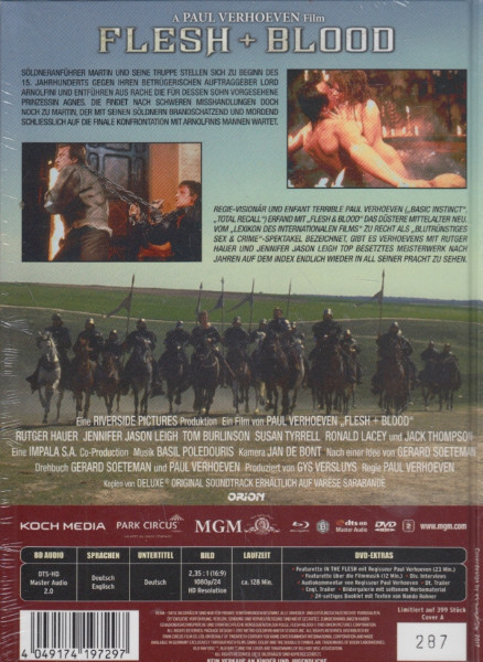 Tauchen Sie ein in eine Welt voller Mut und Verrat mit dem limitierten Mediabook "Flesh + Blood", das einen exklusiven Platz in Ihrer Sammlung verdient. Aufwendig gestaltet und auf nur 399 Exemplare limitiert, bietet dieses Mediabook nicht nur das Filmerlebnis in HD-Qualität auf Blu-ray, sondern auch ein Sammlerstück, das jeden Fan von Action und historischen Dramen begeistert. Die Geschichte entführt Sie in das mittelalterliche Europa, wo eine Gruppe von Söldnern auf einer erbarmungslosen Suche nach Rache und Erlösung ist. Die Hauptrollen spielen charismatische und vielschichtige Charaktere, deren packende Darstellungen ein absolutes Highlight sind. Dieses exklusive Mediabook ist ein Muss für Liebhaber des Genres und solche, die besonderen Wert auf Sammlereditionen legen.