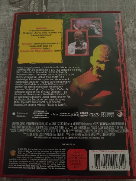 Diese DVD ist mehr als einfach nur ein Film; es ist eine Erweiterung Ihrer Sammlung mit einem Kunstwerk, das sowohl visuell als auch erzählerisch beeindruckt. Das Cover selbst verspricht mit seinem auffälligen Design und der Darstellung der ikonischen Figur Freddy Krueger schon Spannung und Schrecken.