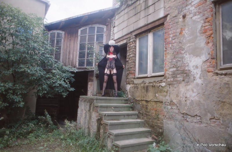 Entdecke die verführerische Welt des bekannten Erotikproduzenten Dominik Alterio mit diesem einzigartigen Dia „W6-121“. Dieses Sammlerstück zeigt ein faszinierendes Motiv, das erotische Kunst und Fotografie in einer beeindruckenden Weise vereint. Die Fotografie fängt eine verführerische Szene in einem antiken, verfallenen Ambiente ein, wo das Model in einer dramatischen Pose steht. Sie ist gekleidet in einem aufreizenden Outfit mit hohen Strümpfen und einem großen Hut, was die Aufmerksamkeit auf sich zieht und die fantasievolle Atmosphäre verstärkt.