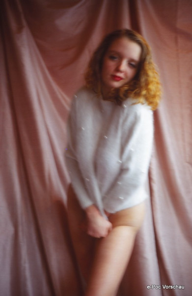 Entdecken Sie ein seltenes und kunstvolles Dia aus dem persönlichen Archiv des berühmten Erotikproduzenten Dominik Alterio. Dieses exquisite Sammlerstück, nummeriert als U1-97, präsentiert eine sinnliche Ästhetik, die Alterios meisterhafte Hand in der Fotografie unterstreicht. Das Bild zeigt eine junge Frau in einem leicht durchsichtigen, weißen Pullover, der ihre natürliche Schönheit und subtile Erotik unterstreicht, vor einem sanft rosa Hintergrund. Das kunstvolle Spiel von Licht und Farbe in dieser Aufnahme macht es zu einem Must-Have für Liebhaber von Fotokunst und Sammler von erotischer Kunst.