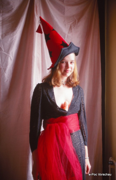 Das Dia zeigt eine junge Frau in einem faszinierenden Kostüm, das Kreativität und Verführung perfekt vereint. Ihr bezauberndes Lächeln und die selbstbewusste Pose machen diese Aufnahme zu einem echten Hingucker. Die sorgsame Komposition von Licht und Schatten betont die Schönheit und das einzigartige Flair der Szene.