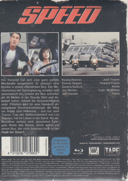 Freuen Sie sich auf eine atemberaubende Achterbahnfahrt mit der limitierten Tape Edition von Speed auf Blu-ray, jetzt brandneu und verfügbar! Tauchen Sie ein in dieses hochgelobte Action-Meisterwerk, welches sein Publikum seit seiner Premiere in den Bann zieht. Erleben Sie Keanu Reeves in einer seiner ikonischsten Rollen neben Sandra Bullock und Denis Hopper in einer Geschichte, die Sie von Anfang an an Ihren Sitz fesseln wird.