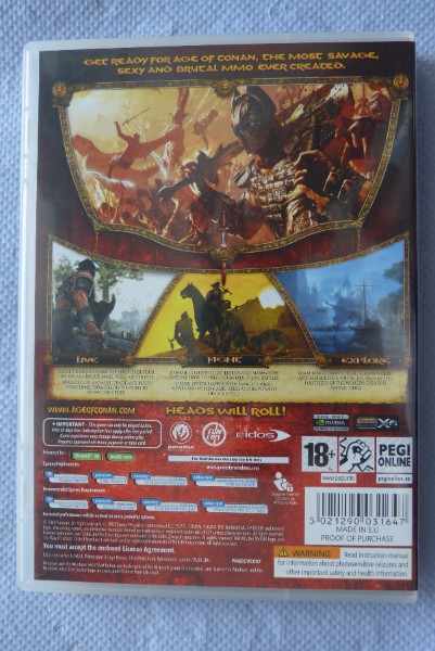 Verpackung und Design: Die Packung zeigt ein imposantes Bild mit dem titelgebenden Helden, Conan, dessen Abbild mit einem markanten Schwert nicht nur ikonisch, sondern auch einladend wirkt.