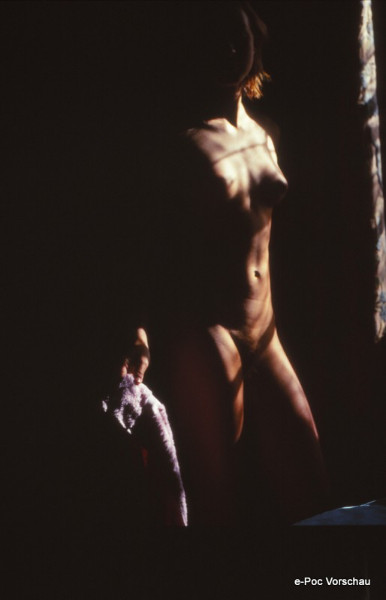 Diese Dias eignen sich hervorragend für Sammler von Fotokunst und Liebhaber von erotischer Ästhetik. Die Bilder zeichnen sich durch ihre sorgfältige Komposition und ihre dramatische Beleuchtung aus, was sie zu einem beeindruckenden Blickfang in jeder Kunstsammlung macht. Das abgebildete Dia zeigt auf beeindruckende Weise das Spiel von Licht und Schatten, das den menschlichen Körper konturiert und somit eine tiefe emotionale Wirkung erzielt.