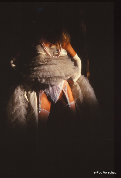 Entdecke die verführerische Welt des Erotik-Fotografen Dominik Alterio mit diesem exquisiten Dia "U5-105". Dieses sorgfältig ausgewählte Bild zeigt eine geheimnisvolle und sinnliche Darstellung, die die Stimmung der 70er Jahre kunstvoll einfängt. Die Fotografie illustriert eine Frau, die teilweise von einem opulenten Federboa umhüllt ist, deren Textur und Farbe durch das warme Lichtspiel wunderschön zur Geltung kommen. Die Perlenketten, die sanft den Körper der Frau schmücken, verleihen dem Bild eine Hauch von Eleganz und Raffinesse.