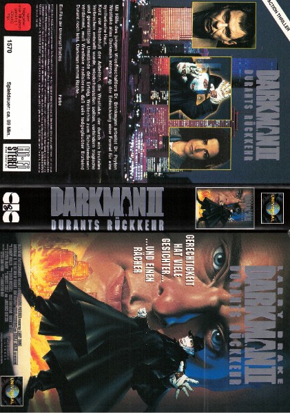 DARKMANN 2 ist der perfekte Erwerb für Liebhaber des Genres und bietet auf einer VHS-Kassette eine hohe Qualität der Bild- und Tonübertragung, die Fans alter Schulklassiker besonders zu schätzen wissen. Machen Sie Ihre Sammlung mit diesem unvergesslichen Titel komplett und genießen Sie ein Meisterwerk, welches Sie auf eine Achterbahn der Gefühle mitnimmt.