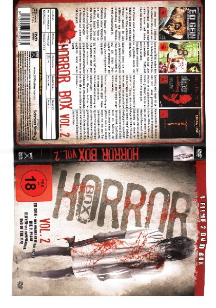 Die Verpackung der „Horror Box Vol. 2“ ist ebenso furchteinflößend wie die Filme selbst. Mit ihrem blutbefleckten Cover, das einen Vorgeschmack auf die schockierenden Inhalte gibt, ist diese Sammlung ein echter Blickfang in jedem DVD-Regal. Die Altersfreigabe von 18 Jahren bestätigt, dass die Filme gefährliche und intensive Erlebnisse bieten, ideal für diejenigen, die echten Nervenkitzel suchen.