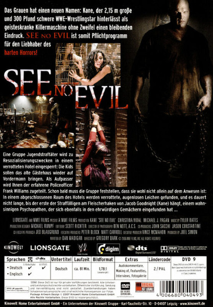Erleben Sie den Nervenkitzel mit der Doppel-DVD, die neben dem Hauptfilm zusätzliches Bonusmaterial bereithält, um Ihre Erfahrung noch weiter zu vertiefen. Perfekt für einen Horrorfilmabend, bei dem die Spannung bis zur letzten Minute steigt. Lassen Sie sich von der packenden Atmosphäre begeistern und holen Sie sich jetzt "See No Evil 1" für Ihre Sammlung – ein unentbehrlicher Teil für jeden, der das Grauen liebt.