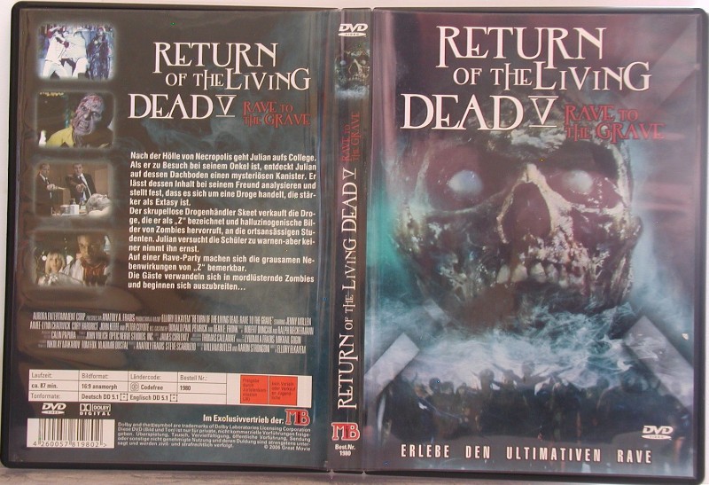 Erleben Sie den ultimativen Rave-Abend mit "Return of the Living Dead 4: Rave to the Grave" auf DVD – jetzt erhältlich in der Kategorie Horror! Tauchen Sie ein in eine erschreckend aufregende Welt, in der Zombies, Partys und ein mysteriöser Kanister für den perfekten Mix aus Spannung und Schrecken sorgen.