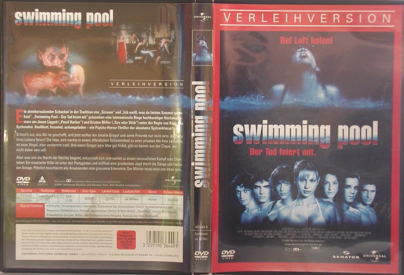 Sichern Sie sich noch heute Ihre Kopie von "Swimming Pool - Der Tod feiert mit" und erleben Sie einen Horrorfilm, der Ihrem Herzen den Atem rauben wird. Diese DVD darf in keiner Horrorfilmsammlung fehlen!