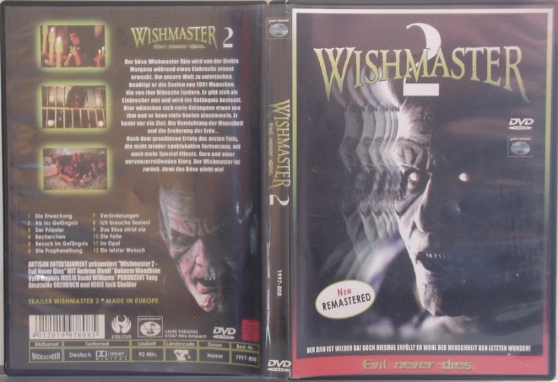 Erschrecken und Staunen Sie in besserer Bild- und Tonqualität als je zuvor. Dank der aufwendigen Remastering-Techniken erleben Sie Wishmaster 2 in einer neuen optischen und akustischen Dimension. Jede beängstigende Szene wird noch intensiver, jede unheimliche Melodie noch eindringlicher – genau wie es für einen Horrorfilm dieser Klasse sein sollte.