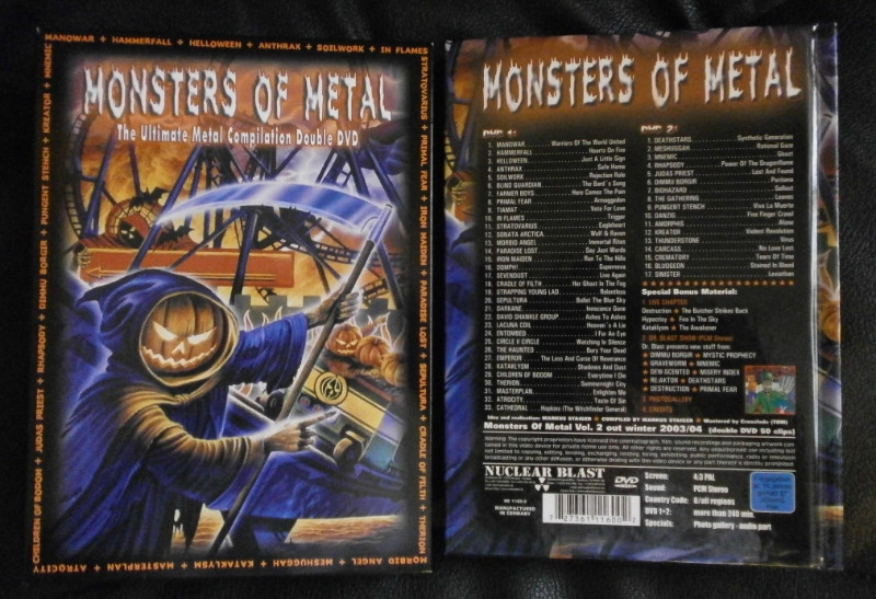 Die "Monsters of Metal" DVD bietet eine beeindruckende Kollektion von 66 Videos verschiedener berühmter und einflussreicher Bands wie Manowar, Hammerfall, Helloween, Anthrax, Soilwork und In Flames. Zusätzlich zu diesen legendären Namensgebern der Metal-Szene, präsentiert diese Sammlung auch Beiträge von aufstrebenden Talenten und garantiert so eine vielfältige und reichhaltige Musikpalette.
