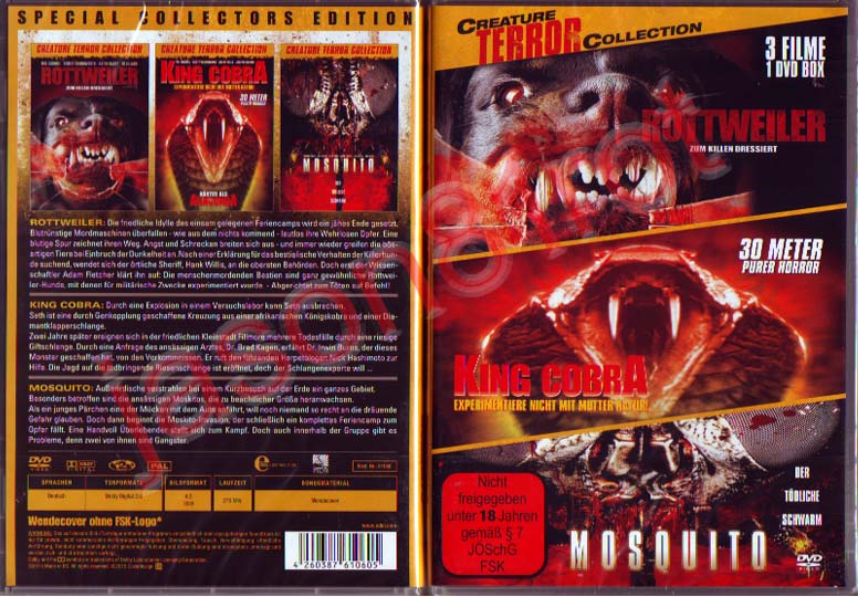 Treffen Sie auf unvergesslichen Horror und adrenalingeladenen Nervenkitzel mit der Creature Terror Collection. Diese exklusive DVD-Box enthält drei schaurige Filme, die Sie in den Bann der unheimlichen Kreaturen ziehen werden. Perfekt für jeden Liebhaber des Horror-Genres, bietet dieses Set endlose Stunden des Schreckens und der Spannung.